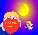 This greeting is filled with love. Let your sweetheart know just how much you love. Two angels are flying against moon scenery. One of them shows your personal message. Customization: Personal Message & Receiver's Name.